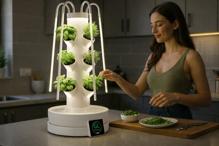Grow your own food with hydroponic towers.